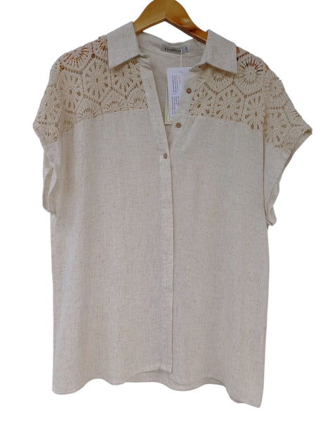 100% LINO, BOTONES DETALLE DE CROCHE.